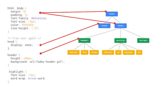 接下来DOM会与CSS样式相结合,成为渲染树。在DevTools中,这个过程被称为Recalculate Styles。渲染树和DOM树结构很类似,但又不完全相同。不会被渲染的元素,比如<head>和被设置为display: none的元素,就不会存在与渲染树中。而DOM中不存在的一些元素,例如伪元素,却会被加入到渲染树中。