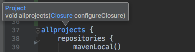 我们发现,我们常用的allprojects配置,实际上真正对应着的,是一个void allprojects(Closure configureClosure)Java方法,而其后{}中的配置,实际上整体是一个Closure类型的参数,在方法说明中,指出这个方法是为当前项目及其子项目执行给定的闭包,目标@Project作为闭包的委托传递给闭包。