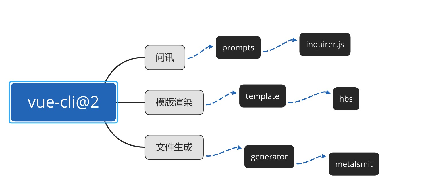 5.提供了cli的核心能力,也就是问询,模版渲染,文件生成这几大核心功能。具体的示意图可以看如下: