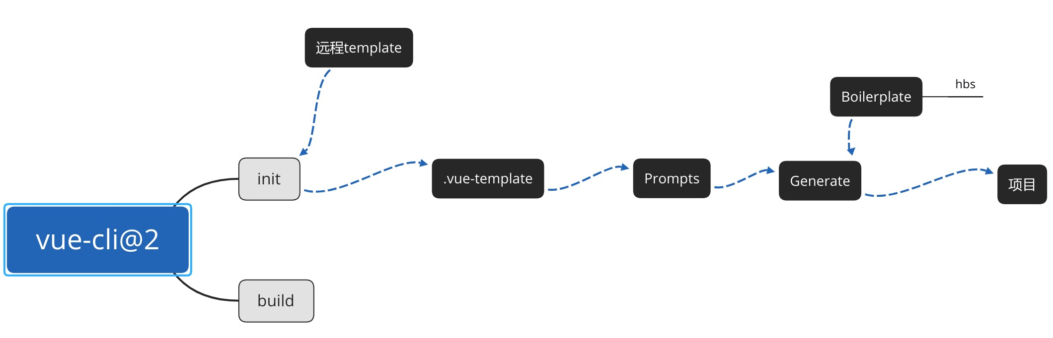首先,cli2提供init指令,执行这个指令,会去远程拿模版文件,并拉到本地用户目录的.vue-template的文件夹,然后通过meta里问题,去问你,然后生成最终模版到你执行命令的目录。
