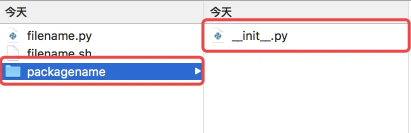 这样一个标准的 Shell 文件在当前的目录中就生成了。上面介绍的是 Shell 文件,但是对于 Python 文件相比之下稍微有那么一点复杂, Python 还有一种叫包(package)文件。所以对于 Python 文件的创建,有如下两种方式: