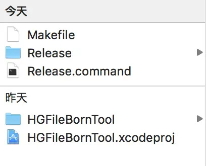 由上图所示,下面是搜索需要的 Mac 项目 HGFileBornTool, 上面是提到的 【实现一键式自动化操作】的相关脚本文件。