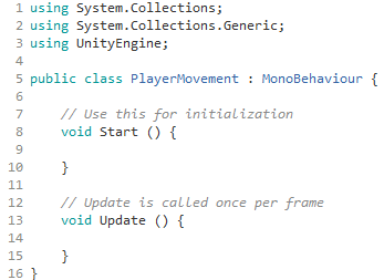 这段代码链接每个密钥的相应方向,例如 按W可将物体向前移动。 最后一行获取对atttached Rigidbody组件的引用,并将其保存在rigidBody变量中供以后使用。
