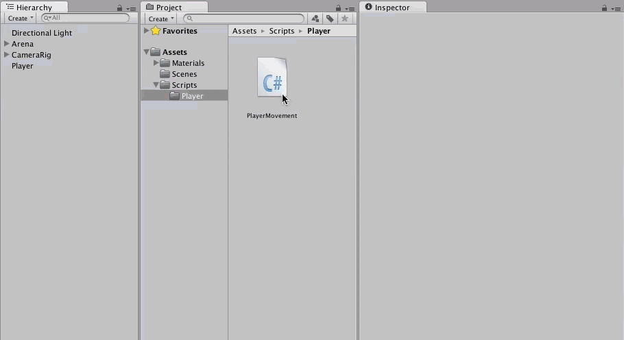 很好! 保存此脚本并返回Unity编辑器。 在Project window中,将PlayerMovement脚本拖动到“层次结构”内的Player上。
