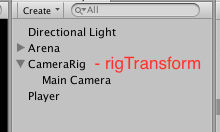 现在,在新创建的CameraRig类中,在Start()方法的正上方创建以下变量:
