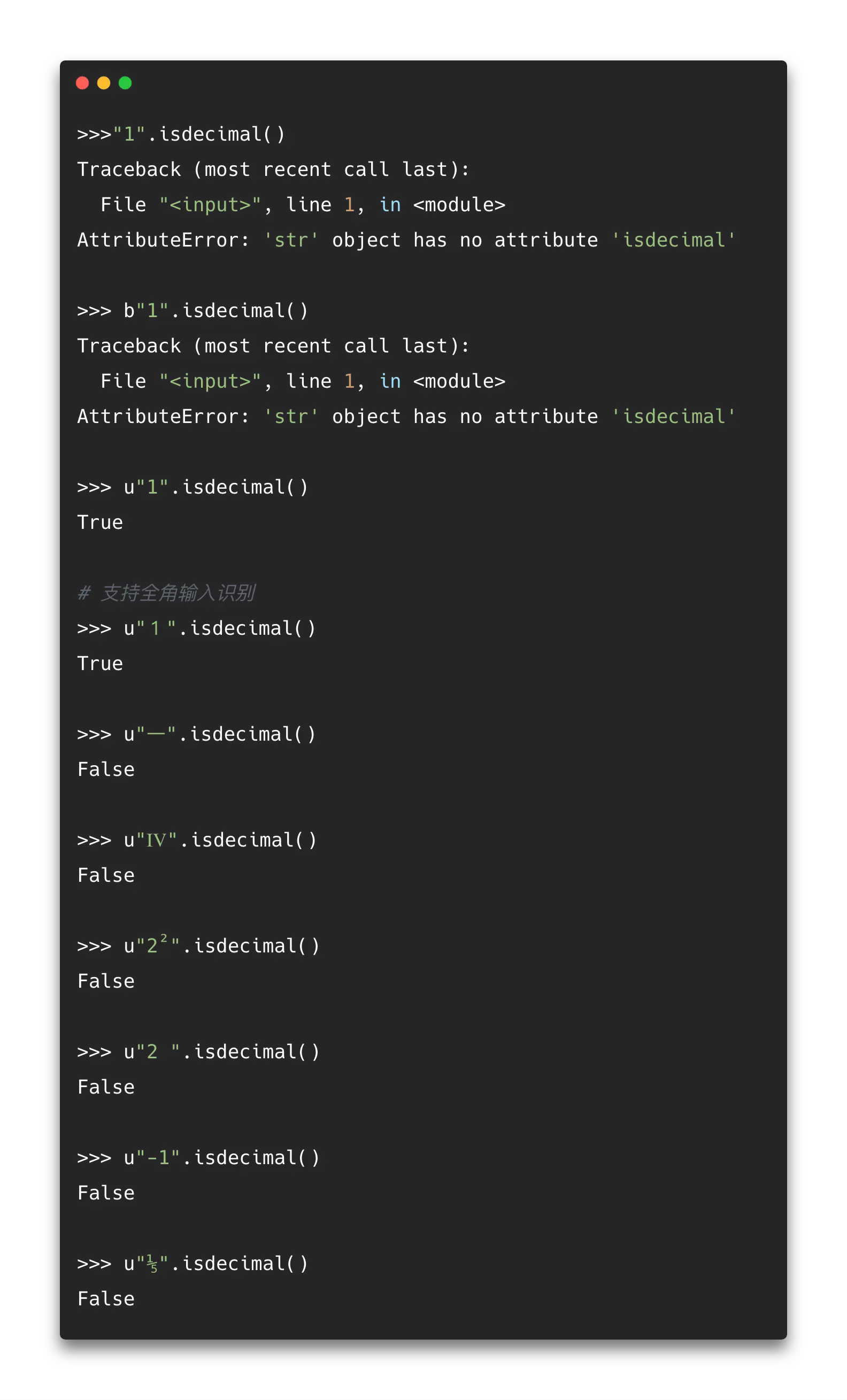 10.isdecimal | 判断是否全为阿拉伯数字非负整数(只接受unicode形式输入)