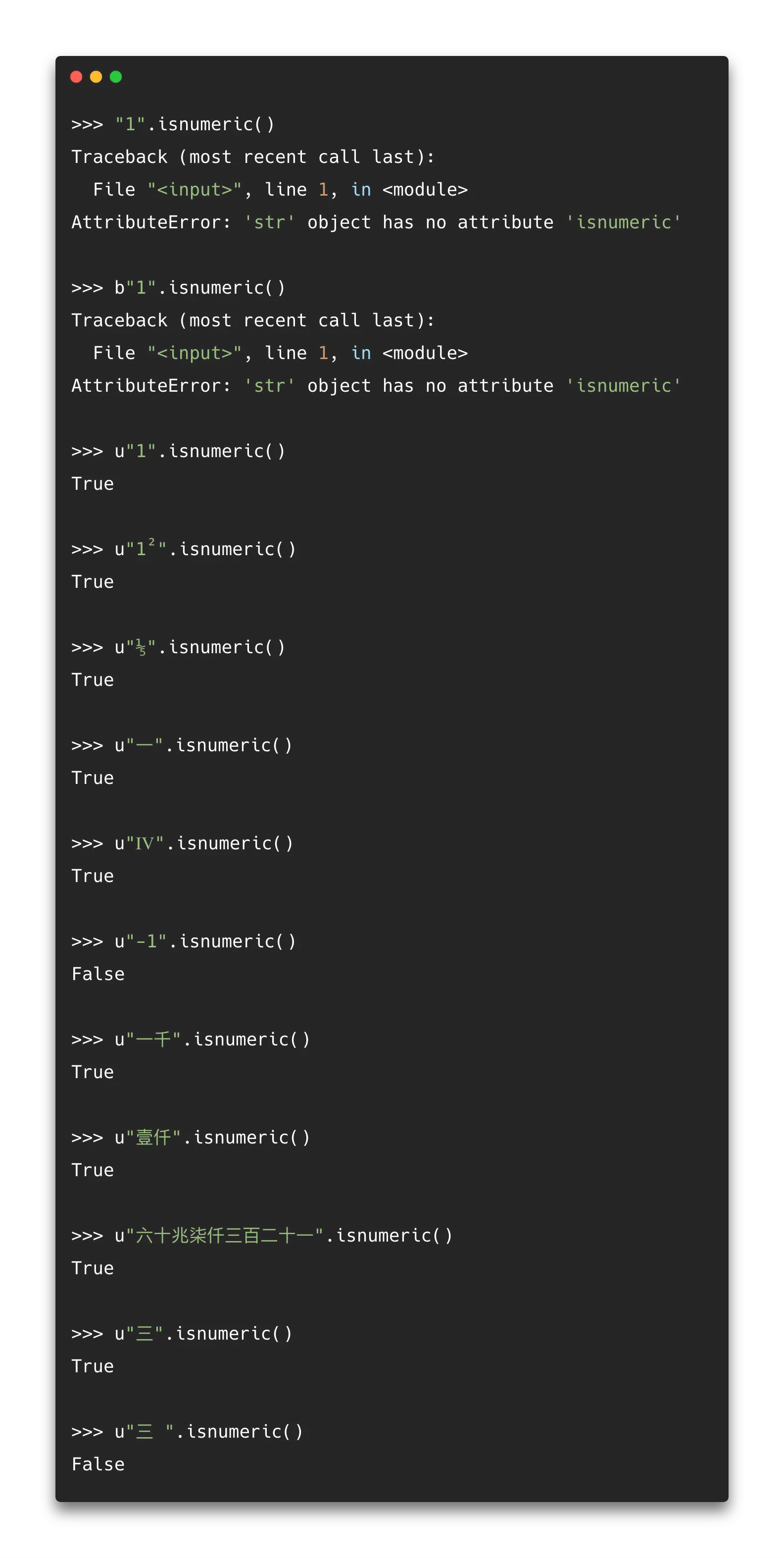 11.isnumeric | 判断是否全为非负整数(只接受unicode形式输入)