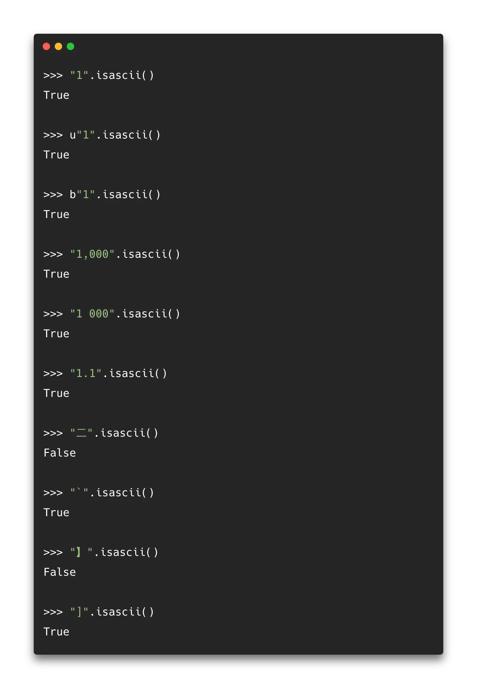 14.isascii() | 判断是否为ascii码【American Standard Code for Information Interchange (美国信息交换标准码)】