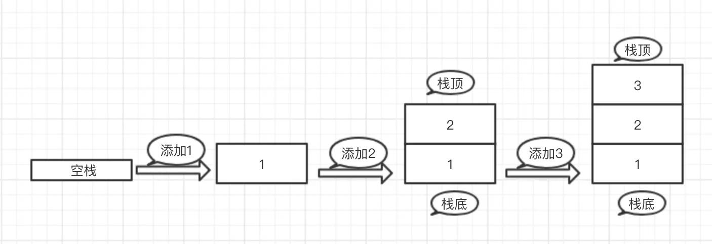 先向栈中加入三个元素1,2,3,接下来用一张图来看一下入栈的过程: