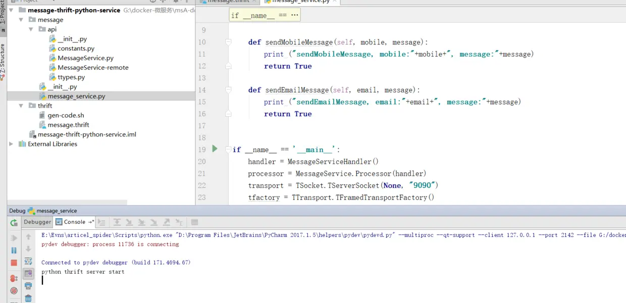 PS:thrift的开发流程是: 先定义thrift的文件,然后通过命令生成对应的python代码。通过实现定义的thrift方法,来完成thrift的调用。