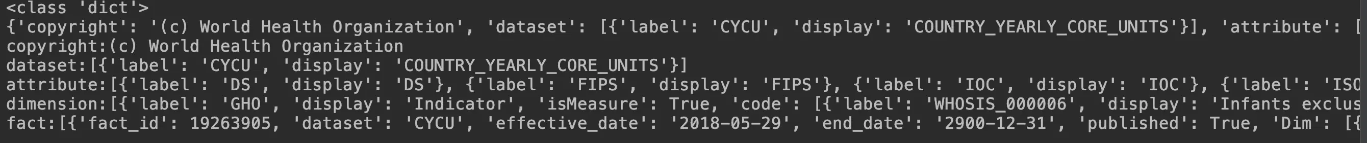 同样在世卫组织官网下载数据源,重命名为 data.json。用格式化工具打开 json 文件如下: