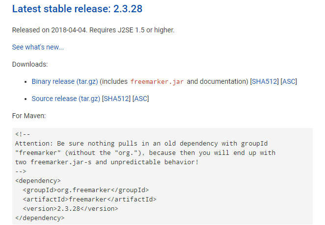 首先我们应该了解FreeMarker是用来干什么的,这时候我看打开官网 https://freemarker.apache.org/