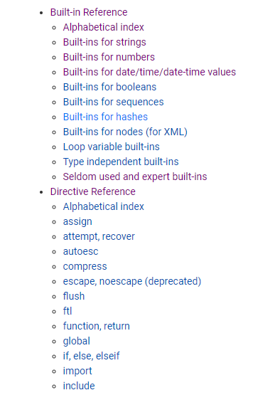 下面就根据上面的套路结合FreeMarker官网溜一遍,来学习FreeMarker,重点在前4部分,后面两部分需要一些积累和经验后才更容易上手,所以本篇不会重点讲