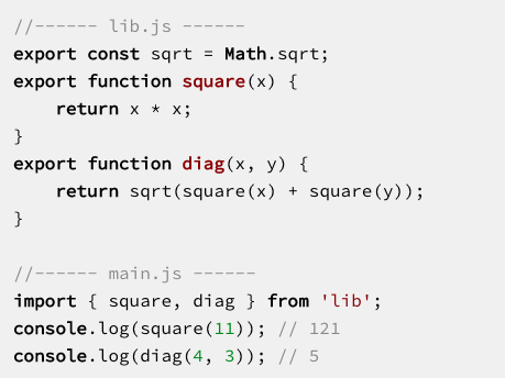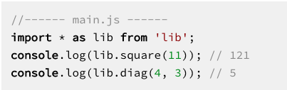 在当前的JavaScript模块系统中,您必须执行代码,以查明导入和导出是什么。这就是ECMAScript 6与这些系统不同的主要原因:通过将模块系统构建到该语言中,您可以从语法上强制执行一个静态模块结构。让我们先看看这意味着什么,然后看看它带来了什么好处。