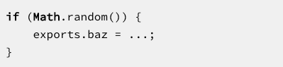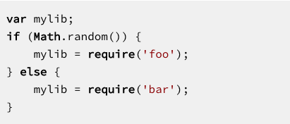 模块的结构是静态的,这意味着您可以在编译时(静态地)确定导入和导出——您只需要查看源代码,不必执行它。下面是CommonJS模块如何让这成为不可能的两个例子。在第一个示例中,您必须运行代码来查找它导入的内容: