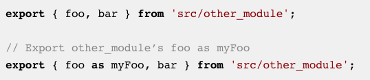 重新导出意味着将另一个模块的导出添加到当前模块的导出中。您可以添加其他模块的所有导出:
