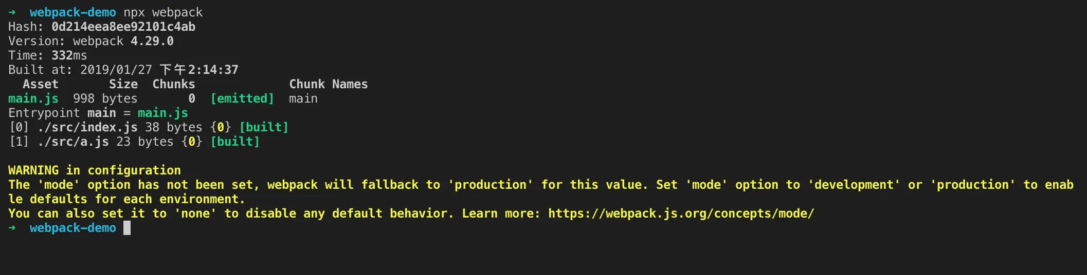 module.exports = { mode: 'development', entry: { index: './src/index.js', a: './src/a.js' }, output: { filename: '[name].[hash:8].js', path: path.join(__dirname, 'dist') } } -