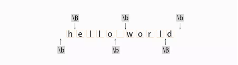 需要注意,\b 也包括 \w 与 ^ 之间的位置,以及 \w 与 $ 之间的位置。如图所示。
