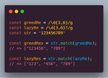 | {m,} | {m,}? | 表示至少出现 m 次 |