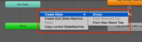 接下来,右键单击Animator并选择Create State,然后选择Empty。