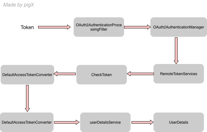 当用户携带token 请求资源服务器的资源时, OAuth2AuthenticationProcessingFilter 拦截token,进行token 和userdetails 过程,把无状态的token 转化成用户信息。