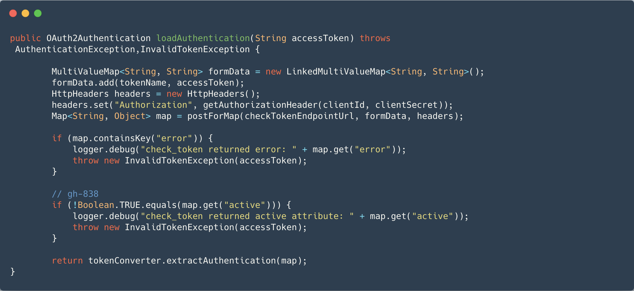 - 继续看 返回给 RemoteTokenServices.loadAuthentication 最后一句
