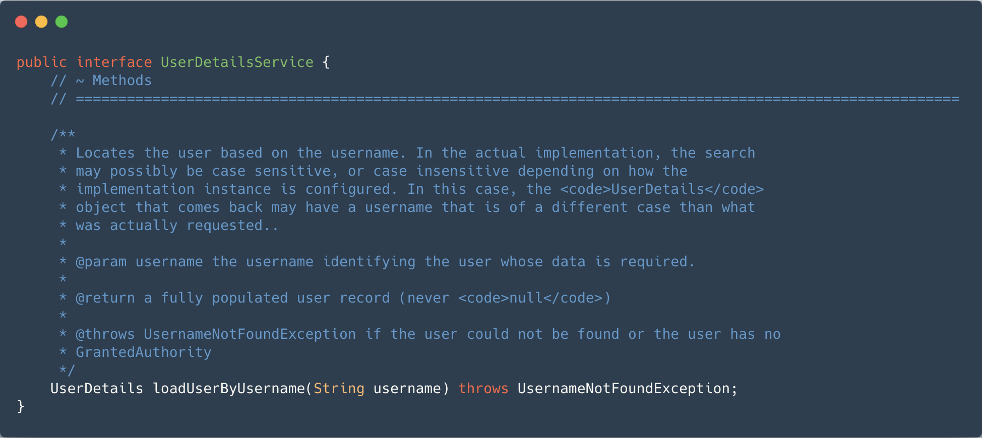 - 那根据的你问题,继续看 UerDetailsServiceImpl.loadUserByUsername 根据用户名去换取用户全部信息。