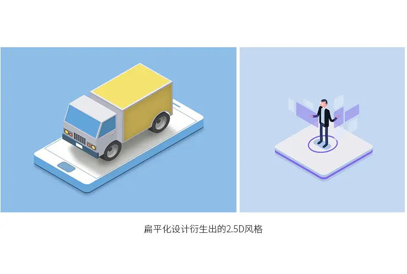 所以我们发现2000年左右有大量三维、质感类的设计,其实也算是为了突破这种风格的多元探索,后来再流行起来的扁平化设计正正是这种风格的一种复辟或者说演变,我们发现扁平化设计这个风格其实跟瑞士平面设计风格对比还有有进化的,比方2.5d这种模式,其实就是用两个纯平面进行正相交的结果。