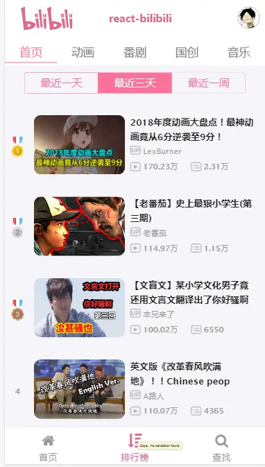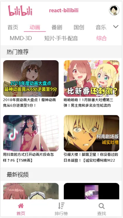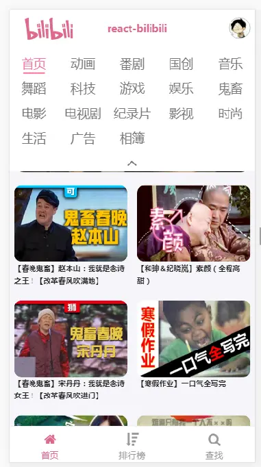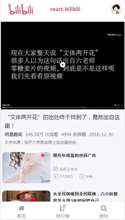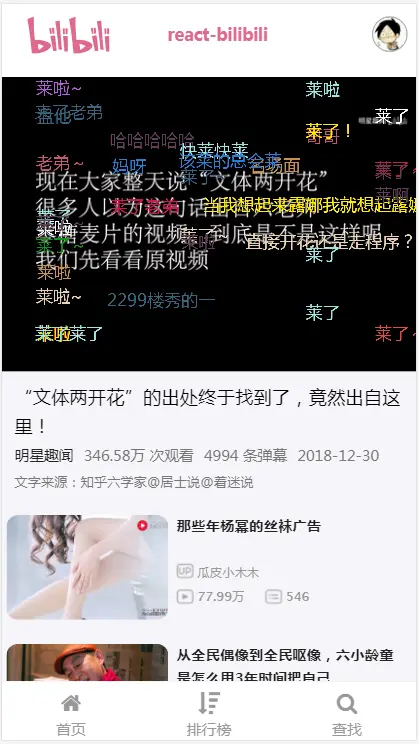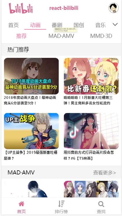 就打开了我内心的辣分躁动,一冲动就写了一个react版的b站,顺便学习一下。