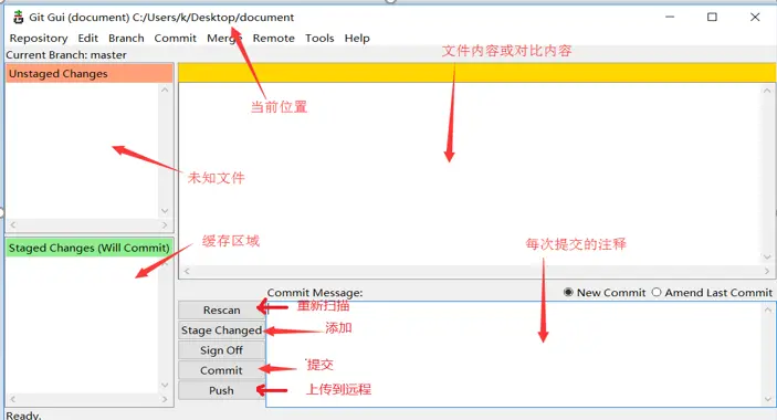 在克隆出来的仓库文件夹右键选择Git GUI Here