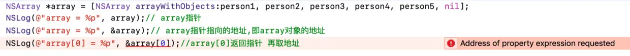 NSLog(@"ptr - 1 的地址 : %p", ptr - 1);
