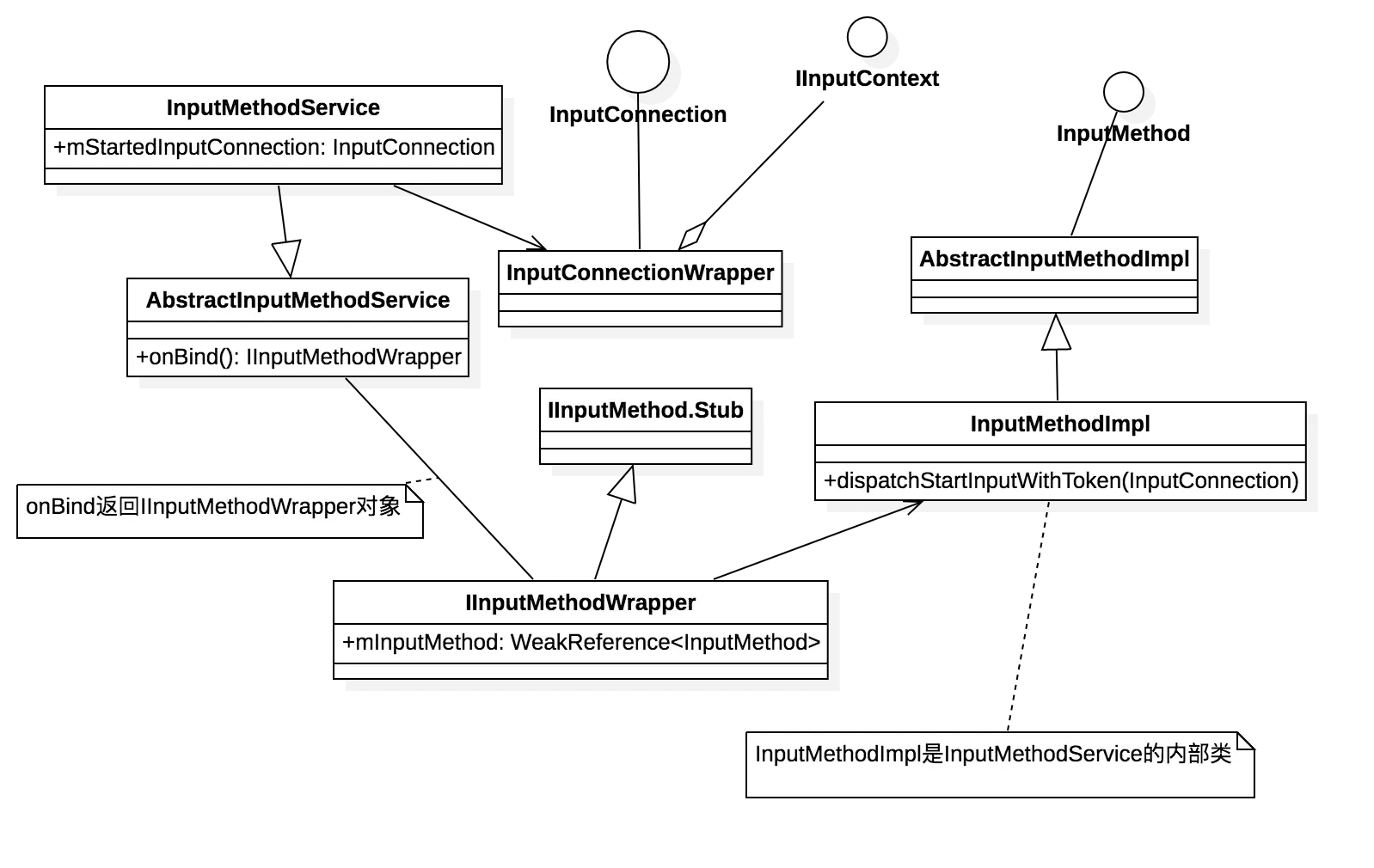 - IMMS持有输入法Service的binder IInputMethod,这个IInputMethod的实现类是IInputMethodWrapper;