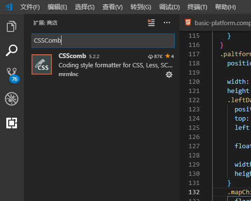 由于Beauty安装失败,所以尝试了第二个csscomb,最终成功完成css格式化工具安装。