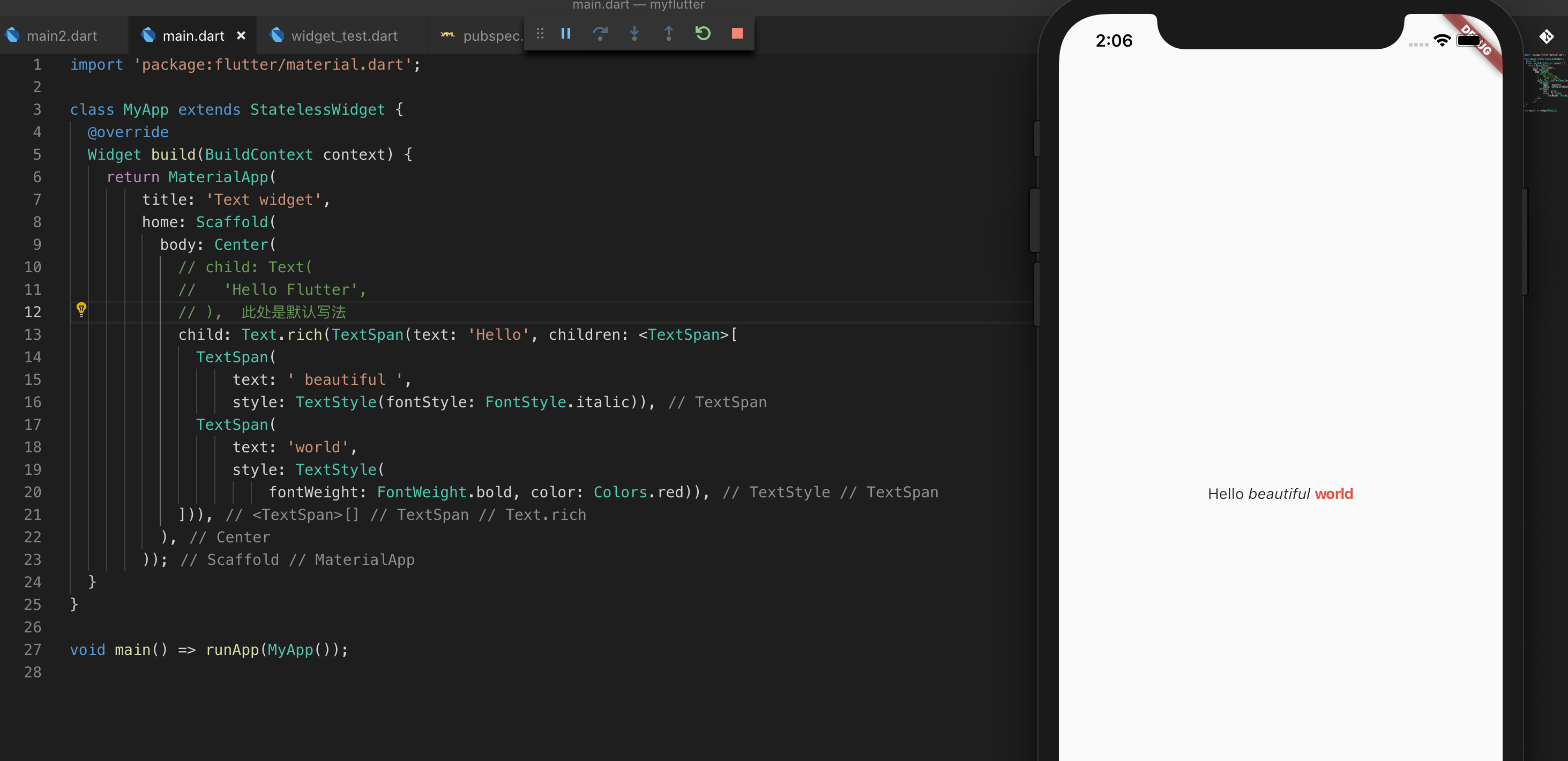 text组件的构造函数有一个rich方法,可以用来使用TextSpan来展示不同样式的段落