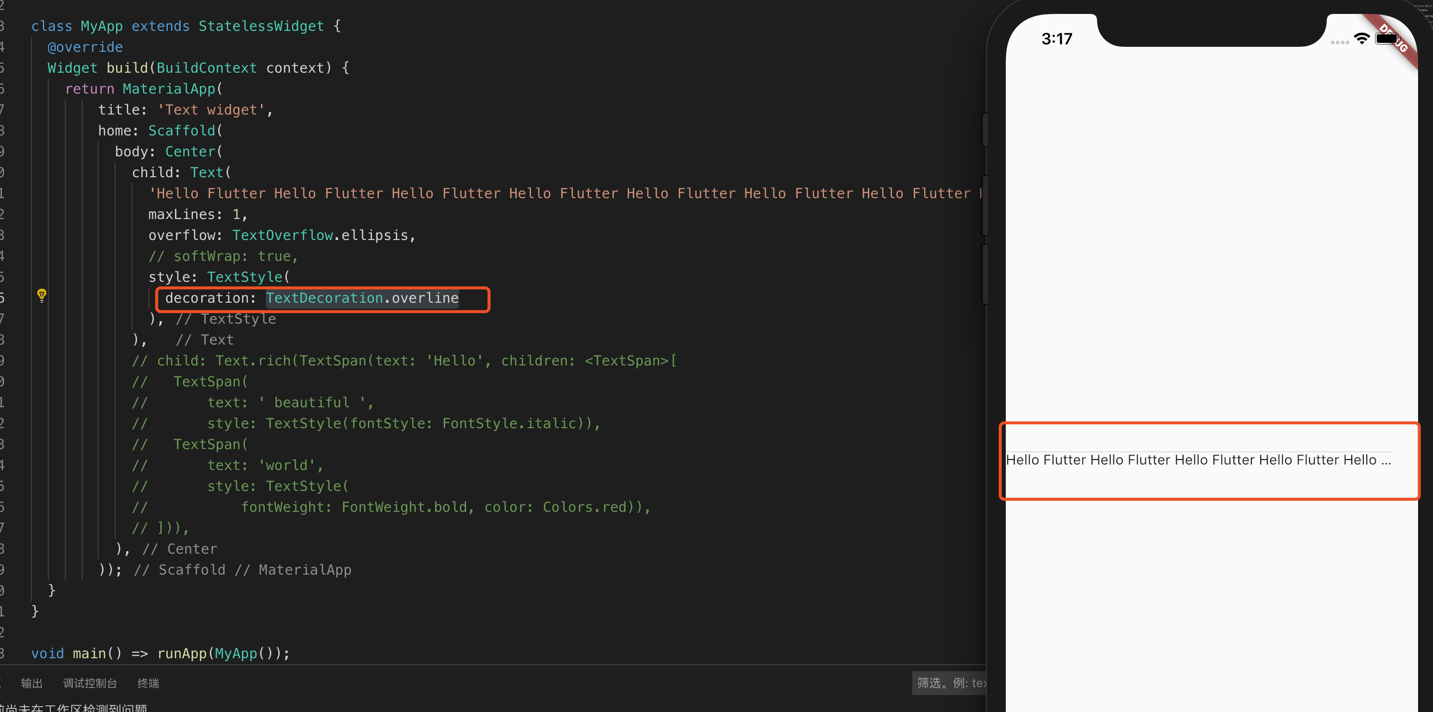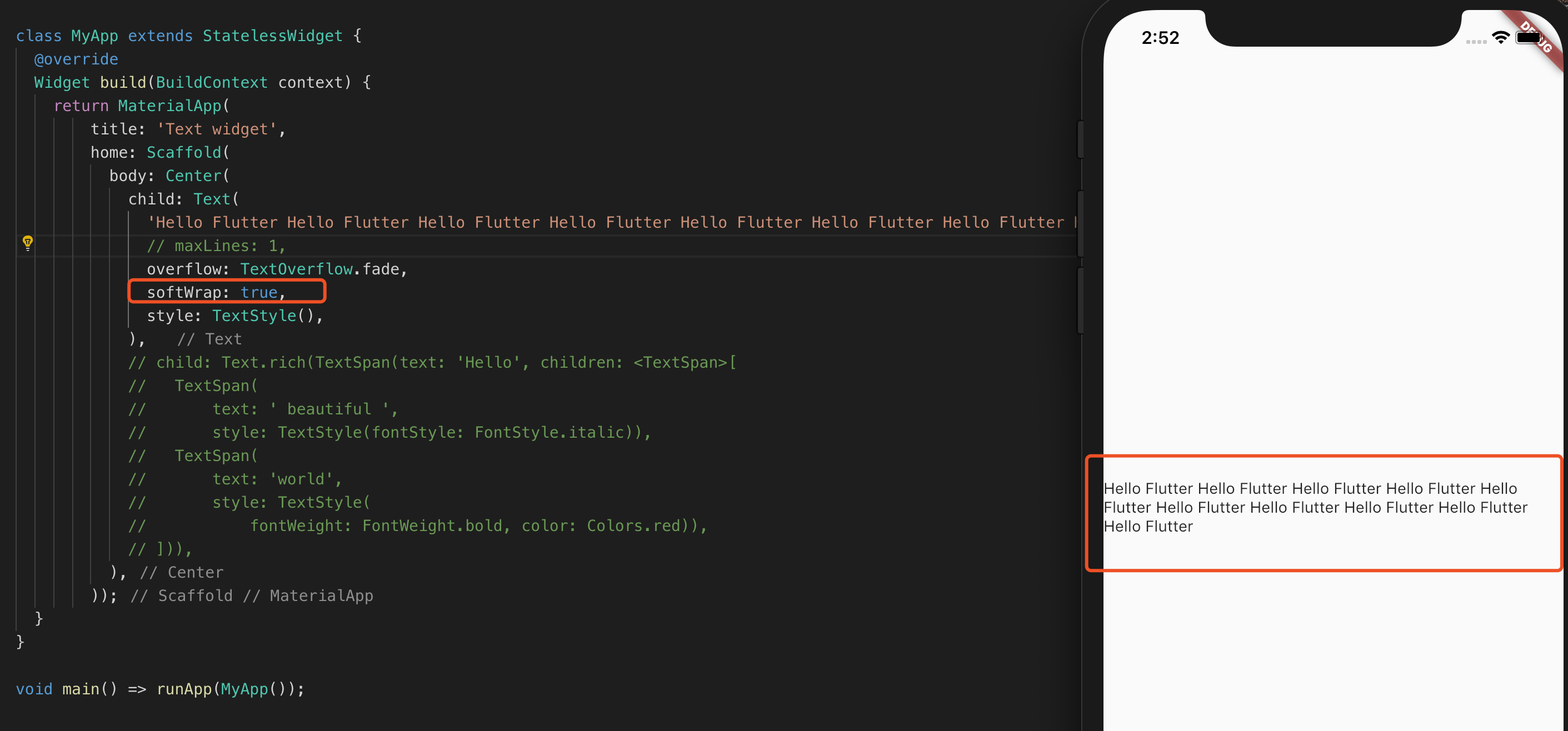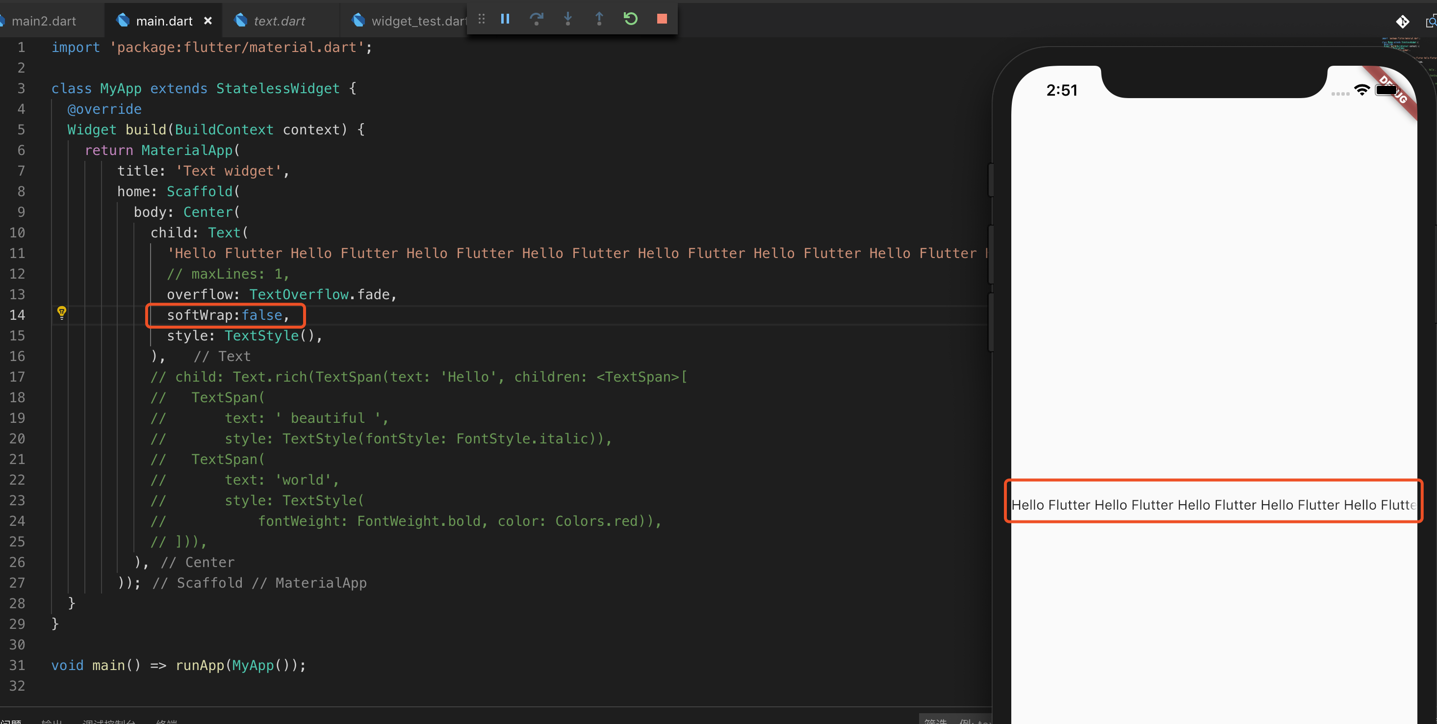 softWrap 文本是否换行,值是一个布尔值false不换号,true 换行