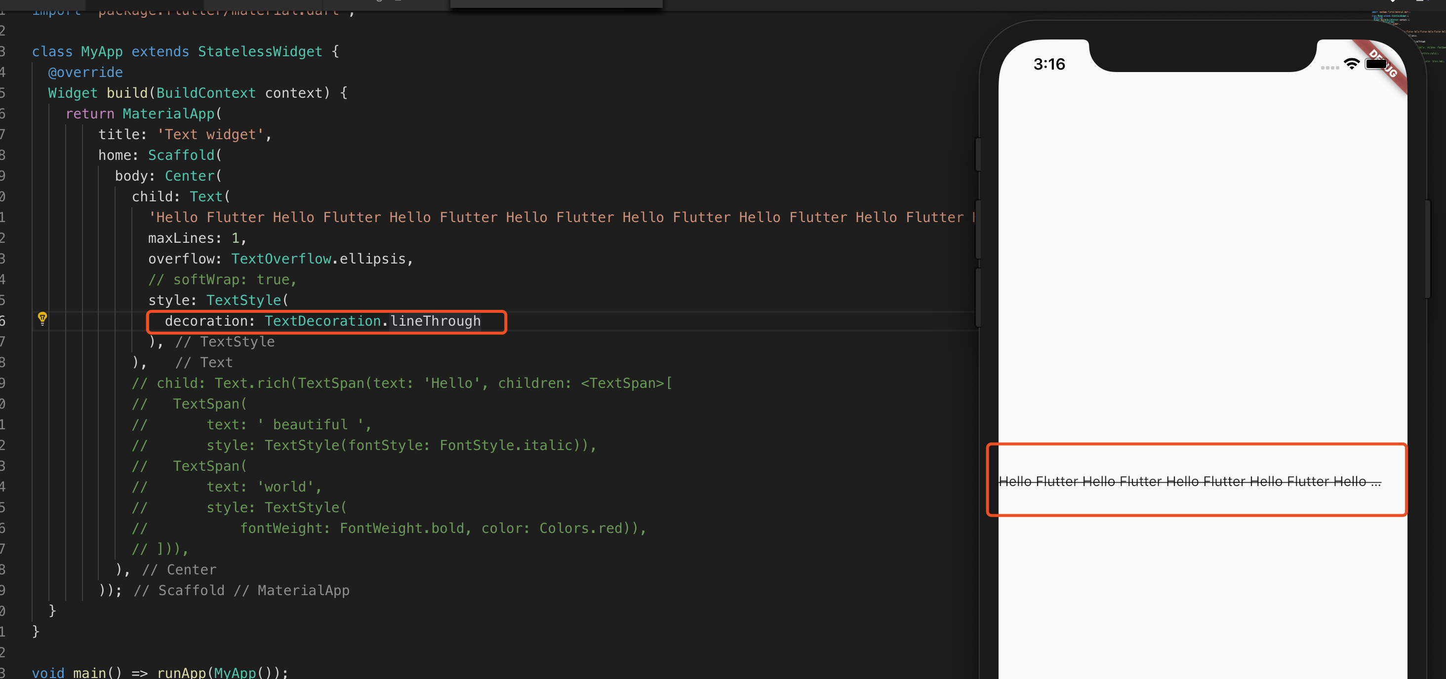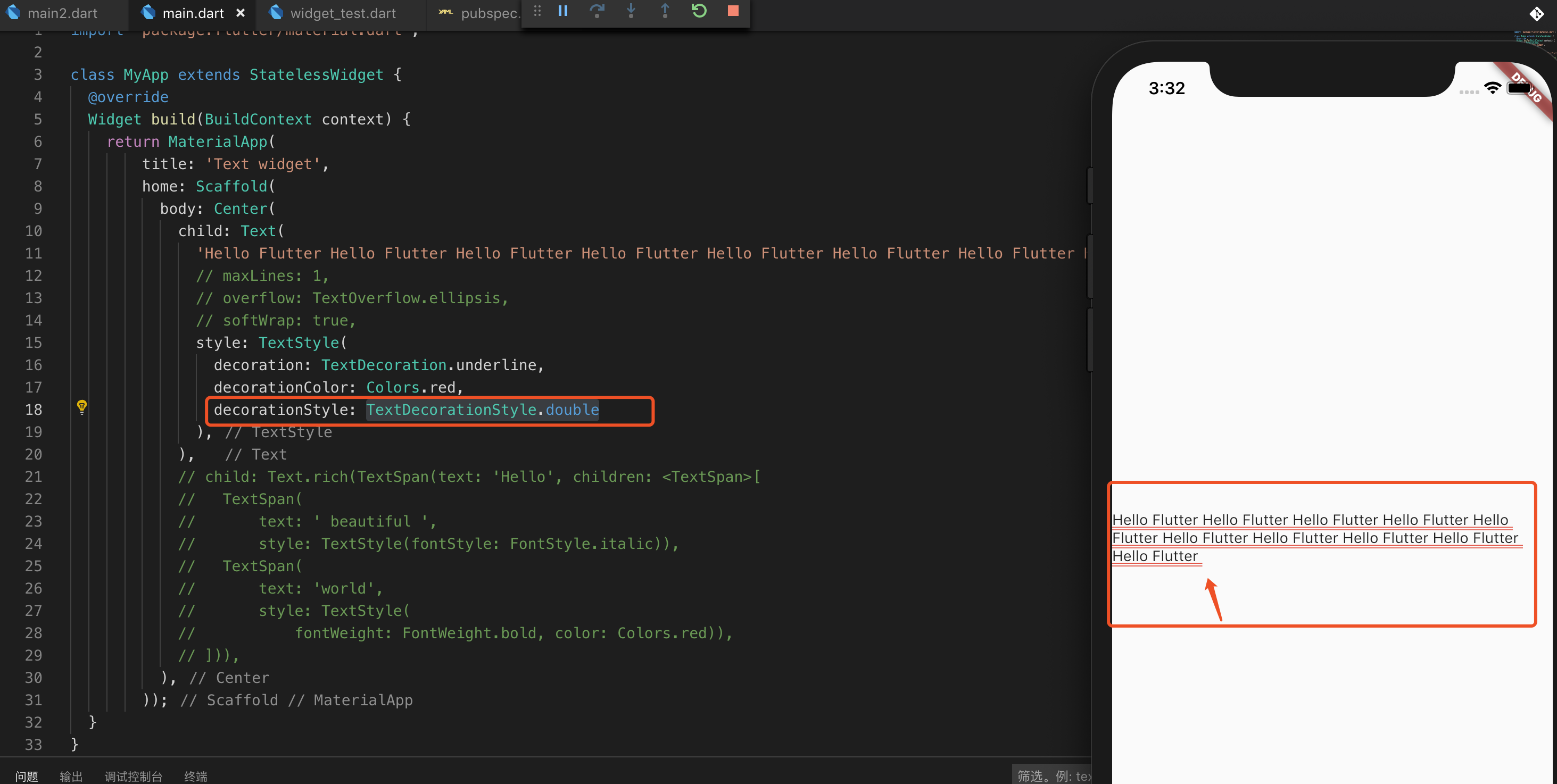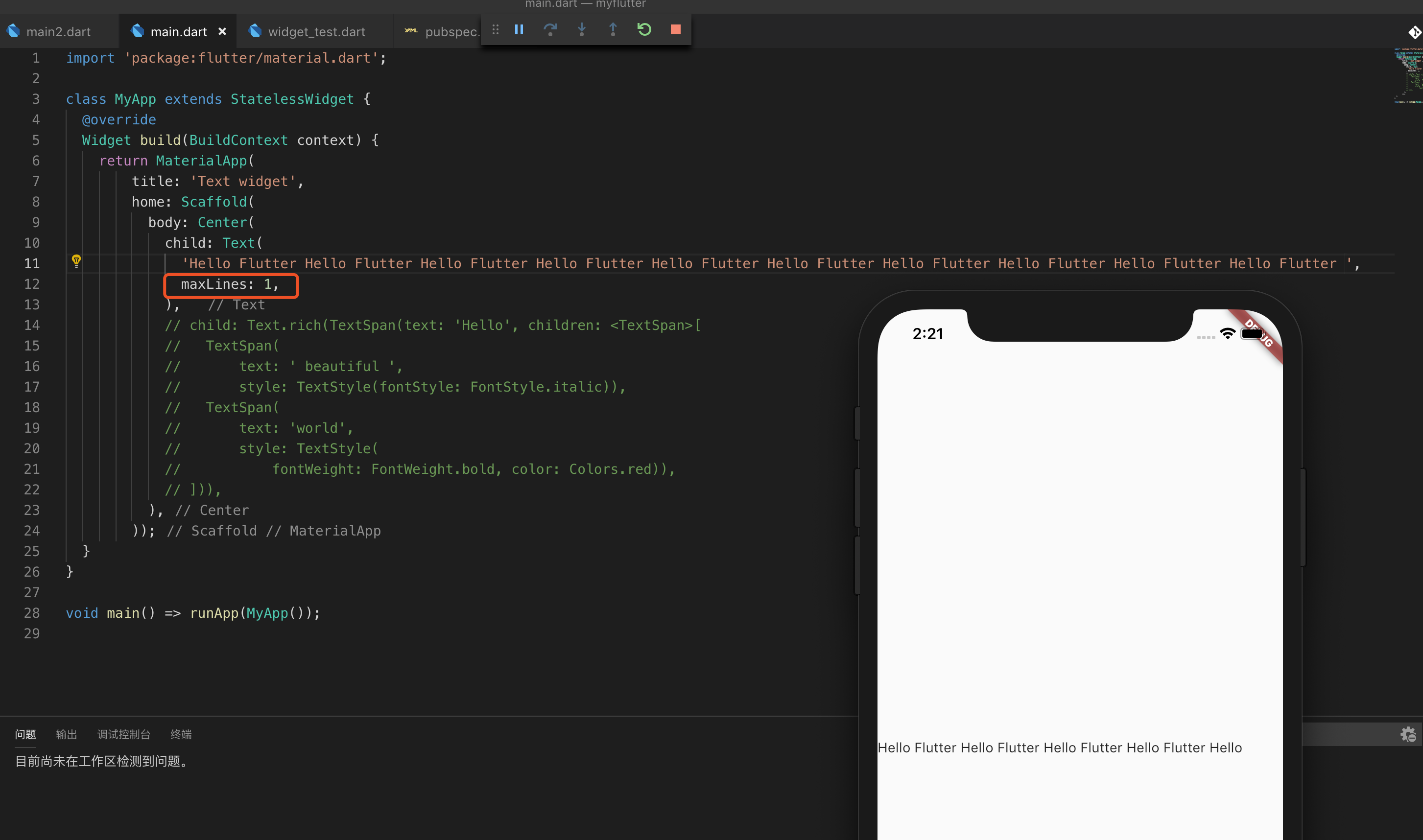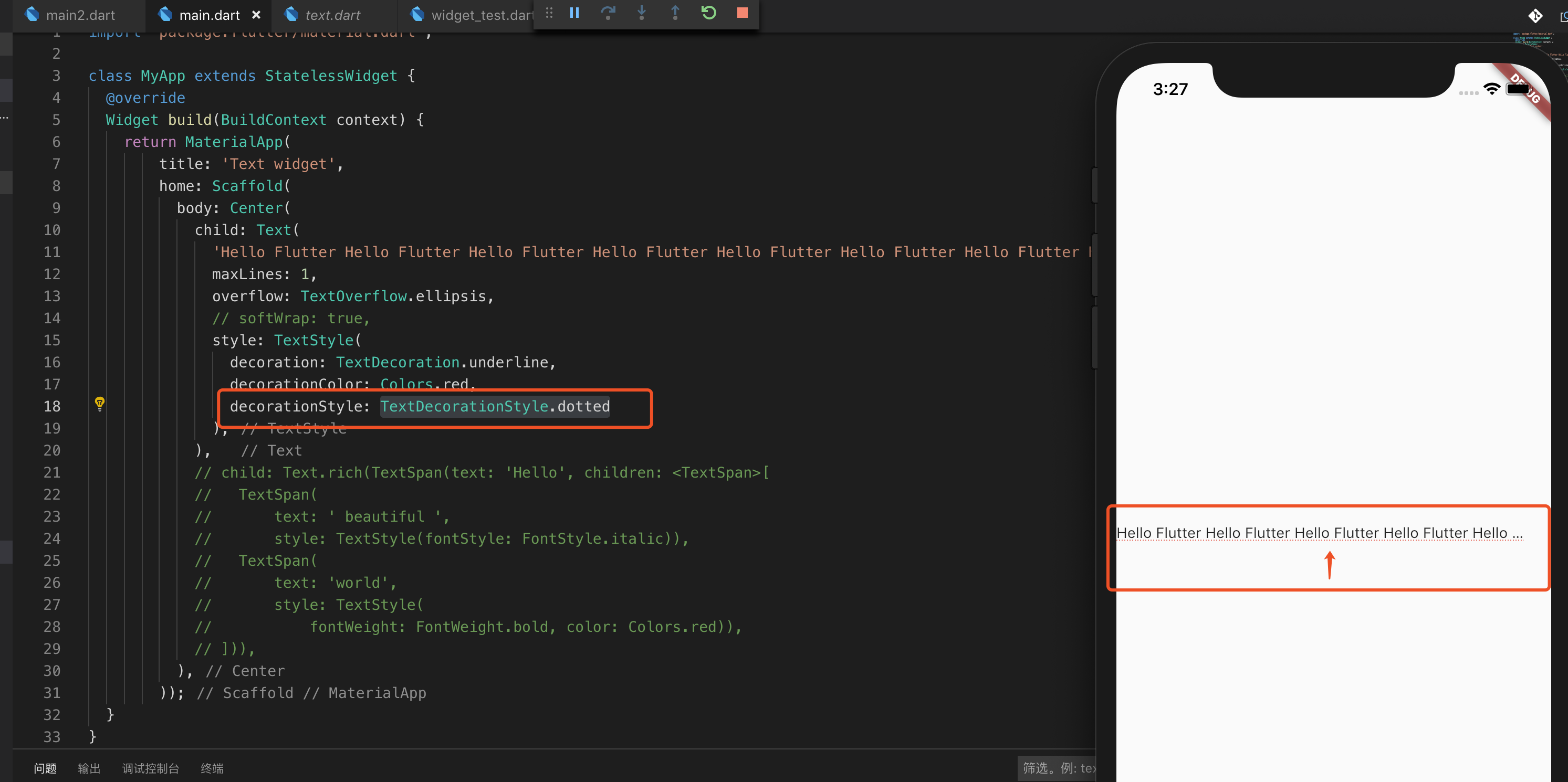 softWrap 文本是否换行,值是一个布尔值false不换号,true 换行