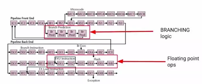如果你写了一段代码,它的执行效率比想象中的要差很多。我们需要知道有哪些因素有可能影响到这段代码的执行效率。例如:比较两个float数值大小的执行时间是int数值的4倍左右。这是因为CPU的运算架构导致的,如下图所示: