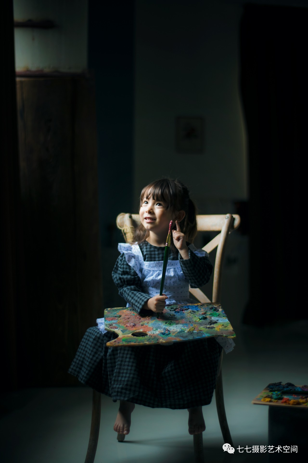 来看看我们想要拍摄的类型,一个暗暗的空间,孩子沉浸在她的世界里,周围一切似乎都消失了,孩子是视觉的焦点。光影的层次如潮水一般漫过屋子,阴影的存在也是这样得当,如同一张古典油画般静谧。