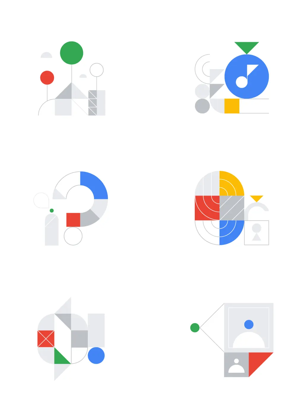 在Stephen Kelleher的带领下,除去的是第一轮设计所展现出来的拘谨和过劲的展示,增加的是更有效的叙述,友好但又不失谷歌的‘严谨’。19年初的这次更新显得大胆了许多,粗中带细,洒脱的把几何图形,纯色块和细腻的线描插画结合在了一起,再加入恰到好处的动效,给予了我们一场谷歌味儿十足的视觉盛宴。