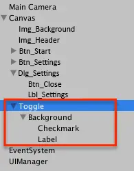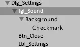 这次您不需要标签,因此请删除嵌套的Label。 然后重命名切换到Tgl_Sound并将其拖到Dlg_Settings上以将其放入对话框中。 这是您在完成后应在层次结构中看到的内容: