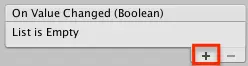 在Hierarchy中选择Tgl_Sound,然后在Inspector中找到On Value Changed(Boolean)列表。 单击+以添加新项目。