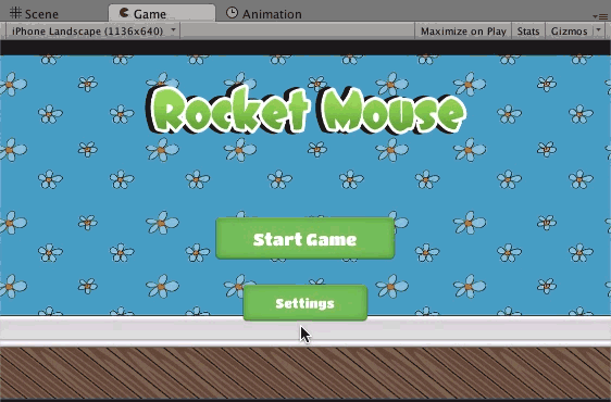 运行场景,然后单击Settings按钮,查看对话框滑入时按钮如何滑出。