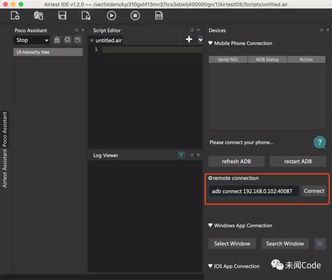 本文将会讲到具体的做法。做法分为两种:第一种是在Airtest的IDE中控制手机。第二种是在Python代码里面控制远程手机。