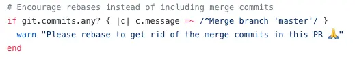 You can use Danger to codify your team’s norms. Leaving humans to think about harder problems. She does this by leaving messages inside your PRs based on rules that you create with the Ruby scripting language. Over time, as rules are adhered to, the message is amended to reflect the current state of the code review.