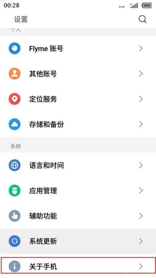 接下来点击设置界面上的“关于手机”一行。