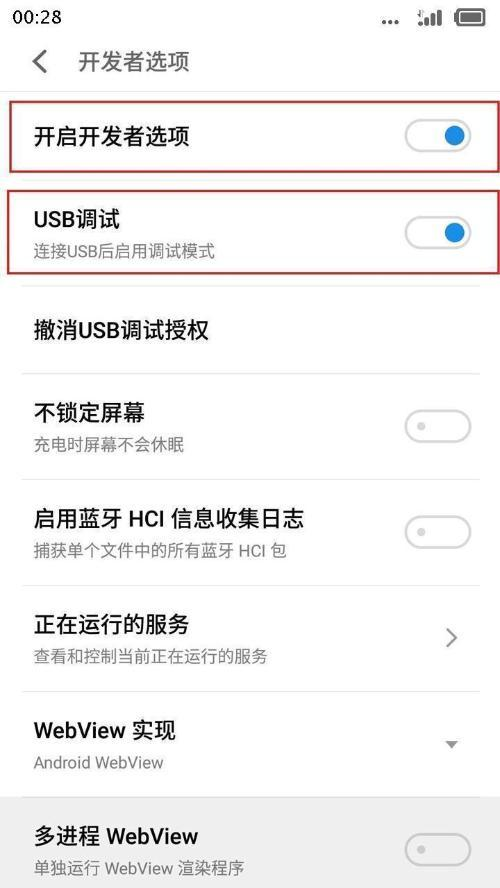 然后,打开开启开发者选项选项,并打开界面下面的usb调试选项。