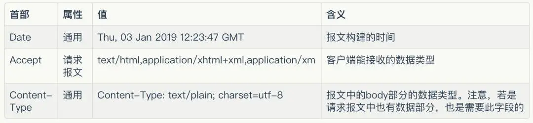 互联网上有数千种不同的数据类型,HTTP给每种对象都打上了MIME(Multipurpose Internet Media Extension, 多用途因特网邮件扩展)标签,也就是响应数据中的 Content-Type. MIME本来是用在邮件协议中的,后来被移植到了HTTP中。浏览器从服务器上取回了一个对象时,会去查看MIME类型,从而得知如何处理这种对象,是该展示图片,还是调用声卡播放声音。MIME通过斜杠来标识对象的主类型和其中的特定的子类型,下表展示了一些常见的类型,其中的实体主体是指body部分:
