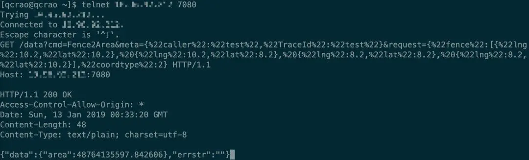 GET /data?cmd=Fence2Area&meta={%22caller%22:%22test%22,%22TraceId%22:%22test%22}&request={%22fence%22:[{%22lng%22:10.2,%22lat%22:10.2},%20{%22lng%22:10.2,%22lat%22:8.2},%20{%22lng%22:8.2,%22lat%22:8.2},%20{%22lng%22:8.2,%22lat%22:10.2}],%22coordtype%22:2} HTTP/1.1