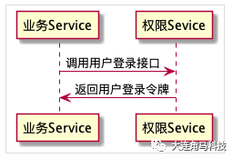 业务Service <- 权限Sevice: 返回用户登录令牌