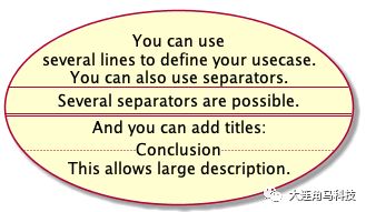 使用括号 (xxx) 来表示用例,用例用椭圆形表达。